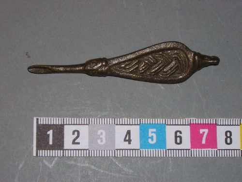 Vikingatida örslev av brons, hittad i Svarta Jorden i Birka på Björkö. Med denna krafsade man ur smuts ur örat. Vilket får en att undra lite vad de egentligen gjorde med sina öron...? (Foto: Historiska Museet)